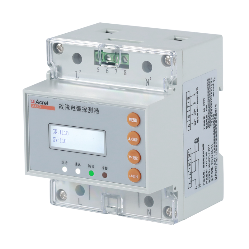 故障電弧探測器(以下簡稱探測器)對接入線路中的故障電弧(包括故障并聯電弧、故障串聯電弧)進行有效的檢測,當檢測到線路中存在引起火災的故障電弧時,可以進行現場的聲光報警,并將報警信息傳輸給上端監控設備,以實現預警火災發生的目的。