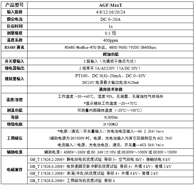 AGF-T穿孔式光伏匯流采集裝置是專門(mén)應(yīng)用于智能光伏匯流箱,用于監(jiān)測(cè)光電池陣列中電池板運(yùn)行狀態(tài),組串電流測(cè)量,匯流箱中防雷器狀態(tài)采集、直流斷路器狀態(tài)采集、裝置帶有RS485接口可以把測(cè)量和采集到的數(shù)據(jù)和設(shè)備狀態(tài)上傳。