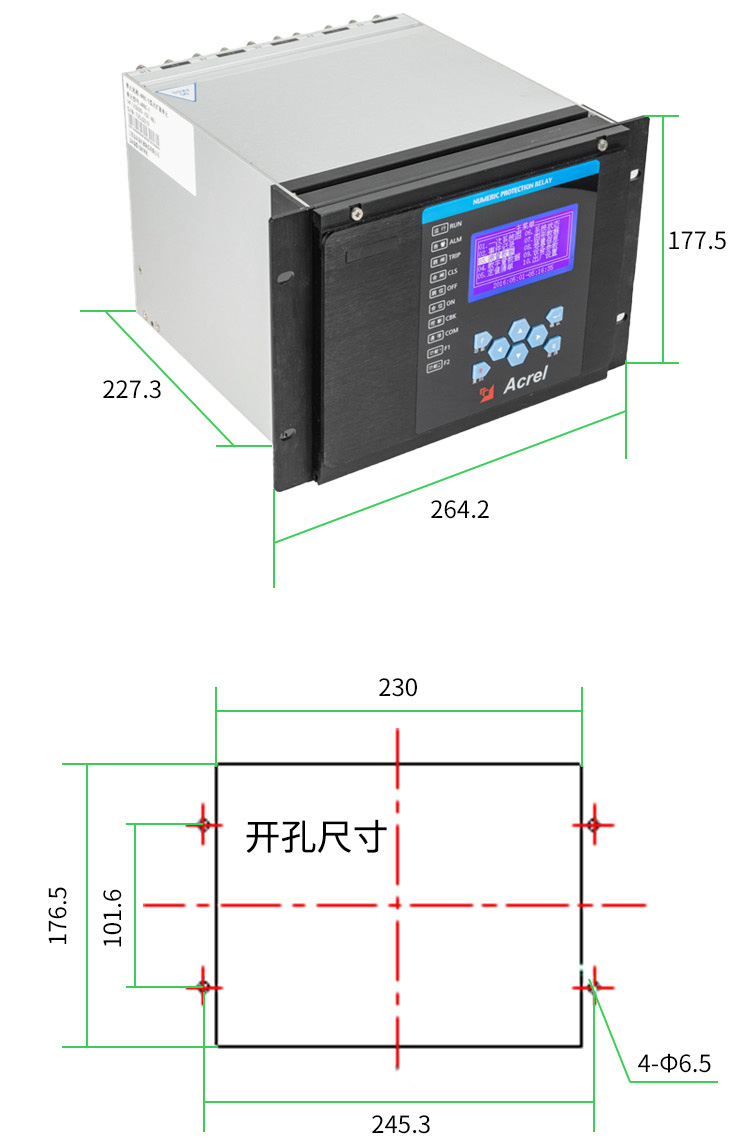 二次額定相電流為5A,裝置電源和開(kāi)入電源為DC110V;