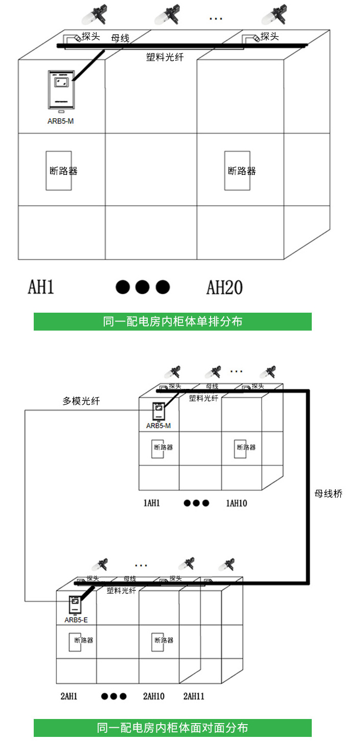 主控單元支持1塊弧光主控板信號(hào)接收,同時(shí)本身自帶9個(gè)弧光探頭的采集信號(hào);