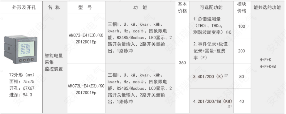 AMC 系列可編程智能電測(cè)儀表是針對(duì)電力系統(tǒng)、工礦企業(yè)、公用設(shè)施、智能大廈的電力監(jiān)控需求而設(shè)計(jì)的智能儀表,它集成電力參數(shù)的測(cè)量(如單相或者三相的電流、電壓、有功功率、無功功率、視在功率、頻率、功率因數(shù))以及電能監(jiān)測(cè)和考核管理。采用高亮度 LED/LCD 顯示界面,通過按鍵來實(shí)現(xiàn)參數(shù)設(shè)置和控制,非常適用于實(shí)時(shí)電力監(jiān)控系統(tǒng)。可以直接取代常規(guī)電力變送器及測(cè)量?jī)x表。作為一種智能化、數(shù)字化的前端采集元件,該儀表已廣泛應(yīng)用于各種控制系統(tǒng)、SCADA 系統(tǒng)和能源管理系統(tǒng)中。