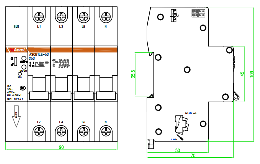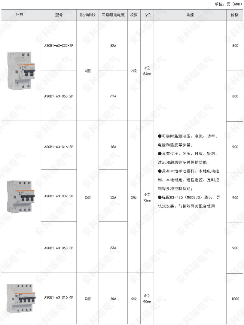 技術要求:監測電路、短路保護,AC 63A以下負載