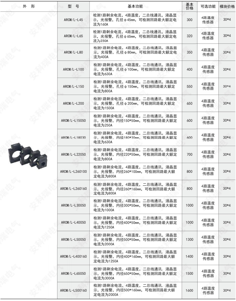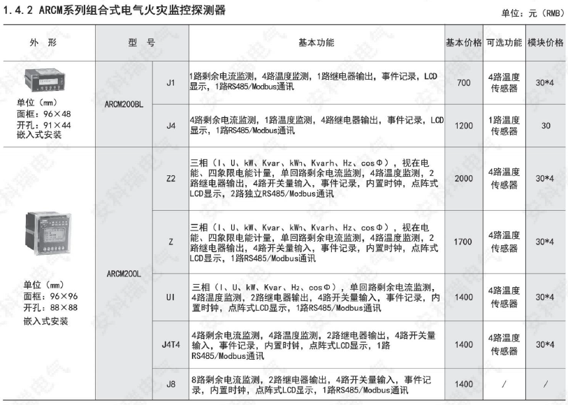 ARCM剩余電流式電氣火災監控探測器安裝在0.4kV低壓配電系統中,用于檢測TN-C-S、TN-S及局部TT系統中的剩余電流、溫度等有關電氣火災隱患產生的電氣參數,當被保護線路中監控裝置參數超過報警設定值時,能發生報警和控制信號,以便消除剩余電流引起的電氣火災隱患。產品采用RS485總線進行通訊,可以與其他報警器、監控單元或監控主機聯合組成火災監控系統,可根據用戶需要選擇集中總線型的信息管理模式或功能分區型的信息管理模式。