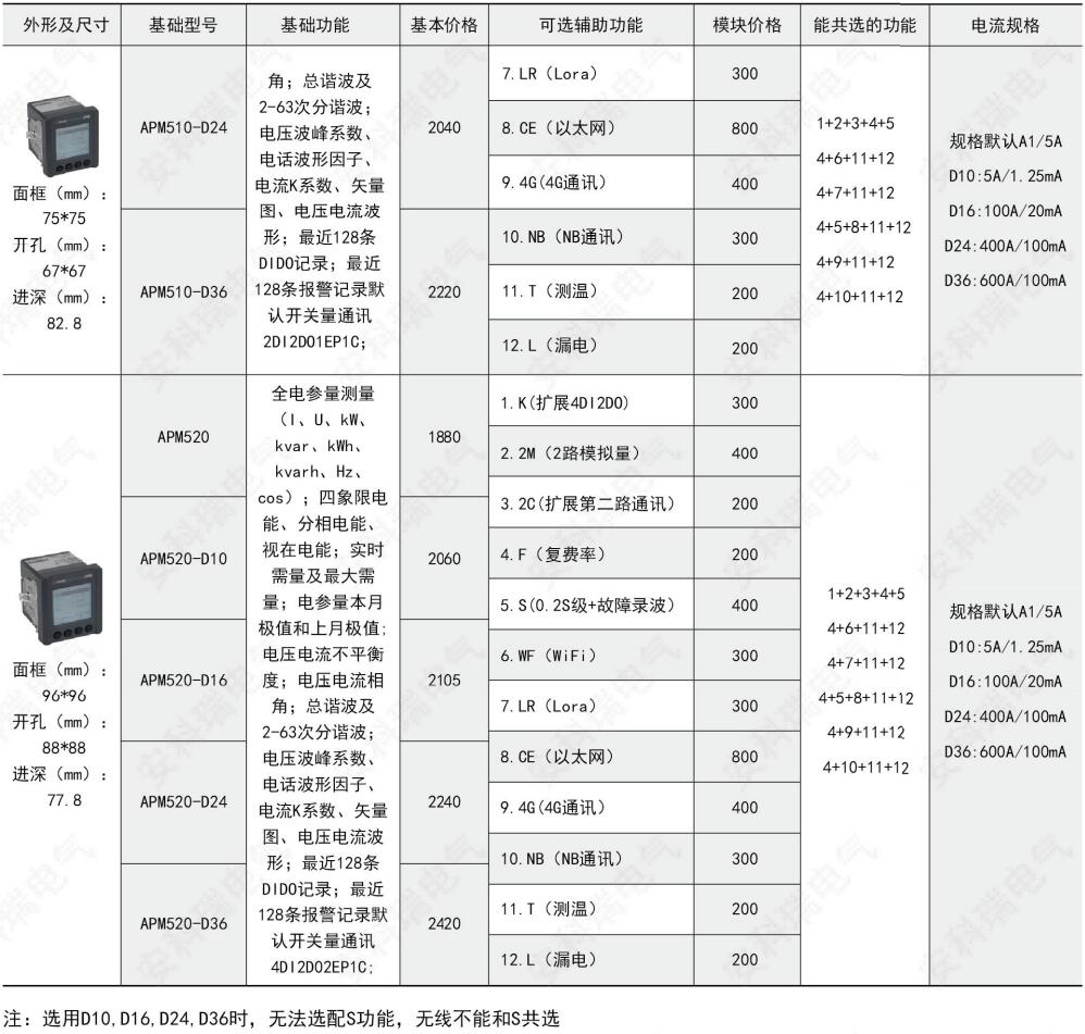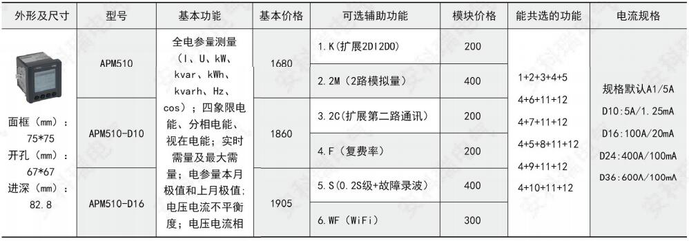 APM系列網絡電力儀表按IEC標準設計,具有全電量測量,電能統計,電能質量分析及網絡通訊等功能,主要用于對電網供電質量的綜合監控診斷及電能管理。該系列儀表采用了模塊化設計,當客戶需要增加開關量輸入輸出,模擬量輸入輸出,SD卡記錄,以太網通訊時,只需在背部插入對應模塊即可。