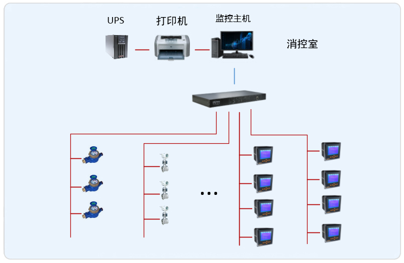 系統(tǒng)采用Acrel-5000型能耗監(jiān)控系統(tǒng),整個系統(tǒng)采用網(wǎng)絡(luò)分布式結(jié)構(gòu),監(jiān)控主機位于消防監(jiān)控室中,所有配電回路均配備安科瑞電力儀表PZ系列,以及一些水表。該項目實現(xiàn)了銀川建發(fā)大閱城?凱悅酒店能耗系統(tǒng)的智能管理,所有監(jiān)控設(shè)備均通過屏蔽雙絞線至后臺的通訊管理機,從而實現(xiàn)遠程監(jiān)控。