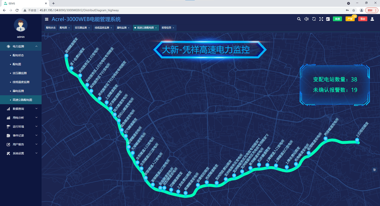 大憑高速共64個變電所其中隧道配電房有44個,收費站服務區配電房有20個,每個配電房均配置有電氣火災探測器,高壓綜保,低壓多功能表,無功補償監控裝置,溫控儀,UPS,EPS,柴發等設備。總計點位5300個左右。