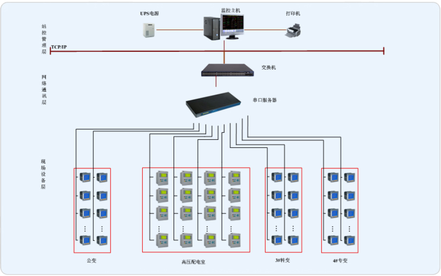 1. 系統(tǒng)具有10KV和0.4kV配電室配電回路運行狀態(tài)使用一次圖形式顯示采集并顯示10KV高壓回路的運行狀態(tài),0.4kV回路的母線電壓,進線、有功無功功率、功率因數(shù)和頻率以及電能;