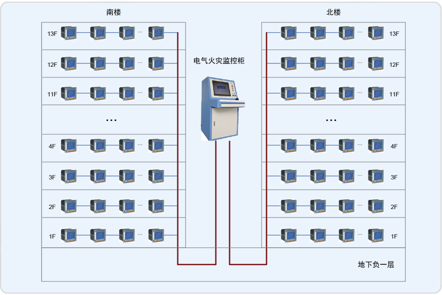 站控管理層針對電氣火災(zāi)監(jiān)控系統(tǒng)的管理人員,是人機(jī)交互的直接窗口,也是系統(tǒng)的上層部分。主要由系統(tǒng)軟件和必要的硬件設(shè)備,如監(jiān)控主機(jī)、顯示器、UPS電源等組成。監(jiān)測系統(tǒng)軟件具有良好的人機(jī)交互界面,對現(xiàn)場各類數(shù)據(jù)信息計算、分析、處理,并以圖形、數(shù)顯、聲音、指示燈等方式反應(yīng)現(xiàn)場運情況。