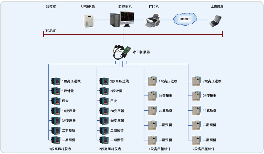 變配電系統主要由A區變電所和B區變電所進行變配電管理,提供整個醫工所所需電力,A區變電所附近設有值班室,實時查看、處理現場情況,整個醫工所占地較廣,由B區變電所提供另一區域的電力。因此,為實現對整個醫工所電力系統的實時監控及對各區用電的電能管理,在值班室設立了監控中心,基于ACREL-3000的電力監控與電能管理系統后臺,實現對整個配電系統的實時監控與電能管理。
