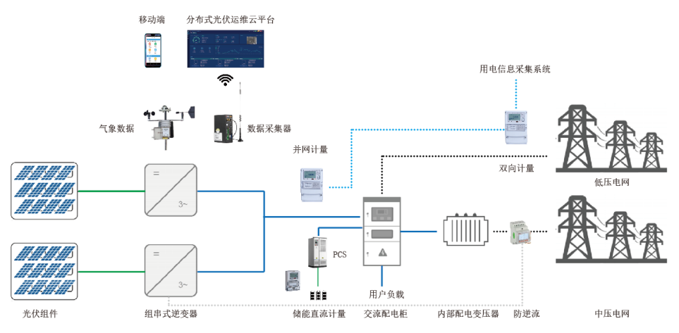 | 匯流采集裝置 | AGF | 一次電流采用穿孔方式接入,可20A,穿孔方式接入,安裝方便,安全性高;帶3路開關(guān)量狀態(tài)監(jiān)測,可以對匯流箱內(nèi)的防雷器、斷路器狀態(tài)進行監(jiān)控;具有內(nèi)部測溫功能,可實時監(jiān)測箱內(nèi)溫度,保證電氣安全;具有DC 1500V母線電壓測量功能;具備RS485接口,Modbus-RTU協(xié)議,將監(jiān)測數(shù)據(jù)上傳至后臺系統(tǒng) |