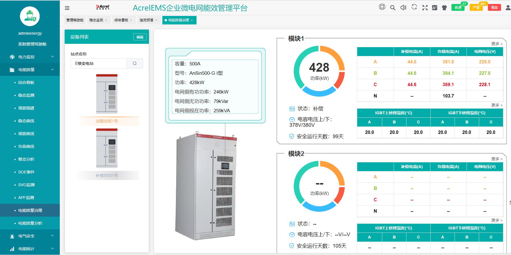 電能質量分析與治理系統主要是研究消除供配電系統中的無功補償和諧波治理問題,主要的產品有有源電力濾波器、低壓無功功率補償裝置、靜止無功發生器、混合動態濾波補償裝置、混合動態消諧補償裝置、智慧型動態無功補償裝置、諧波保護器等,適用于新建、改建、擴建和技改項目中工業與民用及公共建筑內電氣設備的無功補償、諧波抑制及綜合治理等,可根據不同行業類型和負載類型的電能質量問題提供合適的設計解決方案,以達到改善供電質量和確保電力系統安全經濟運行的目的。