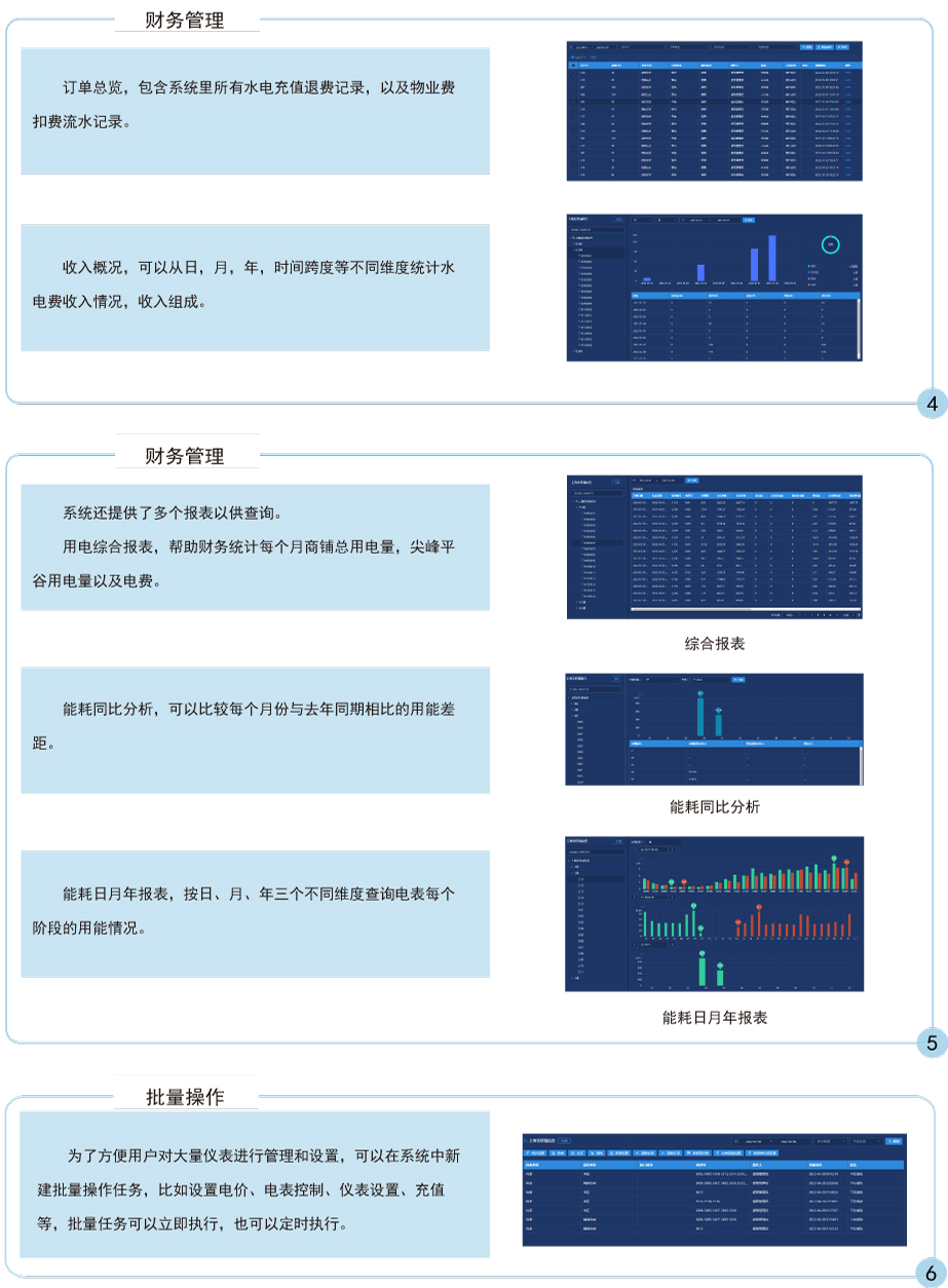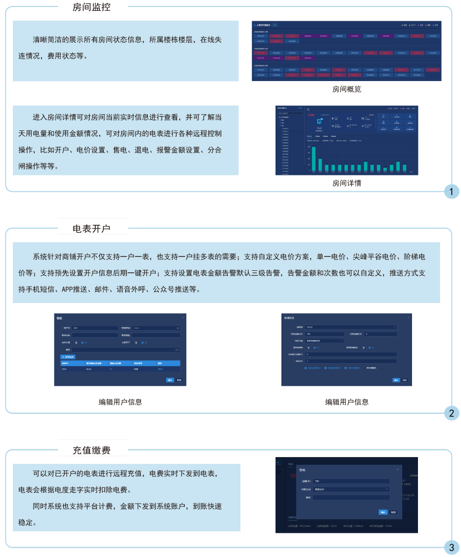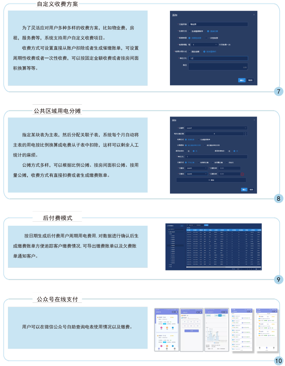 主要完成電能表/水表參數(shù)設(shè)置,商戶售電/售水管理及能耗管理工作,操作簡(jiǎn)便,實(shí)現(xiàn)物業(yè)公司遠(yuǎn)程實(shí)時(shí)操作實(shí)時(shí)監(jiān)控,具有良好的人機(jī)界面,能夠有效的統(tǒng)計(jì)和管理數(shù)據(jù)。安裝方便,是用電管理部門、商業(yè)廣場(chǎng)和物業(yè)小區(qū),提高用電用水管理水平,解決收費(fèi)難問題的理想產(chǎn)品。