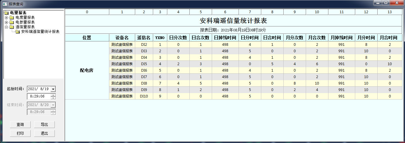 Acrel-1000綜合自動化監控系統具備定時抄表匯總統計功能,用戶可以自由查詢自系統正常運行以來任意時間段內各配電節點的用電情況,即該節點進線用電量與各分支回路消耗電量的統計分析報表。