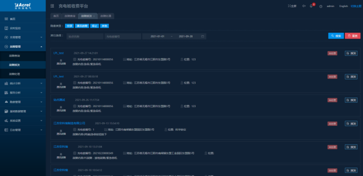顯示待派發的充電樁故障信息,派發之后生成工單,由運維人員到現場處理故障。