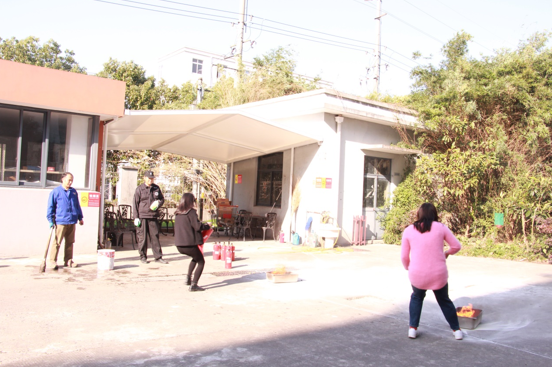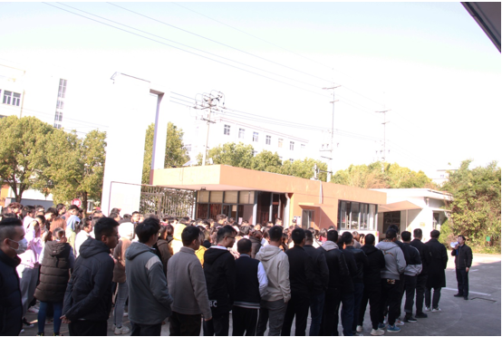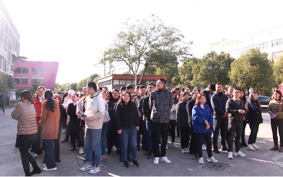 聽到警報,所有員工貓著腰,有序地逃生到門口的空地上,在寒風中,大家整齊地進行列隊報數。