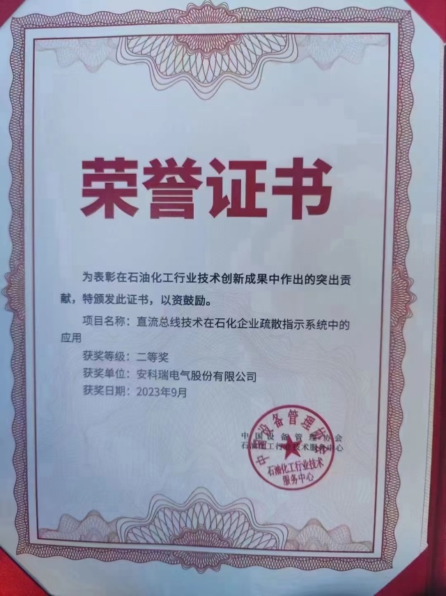 安科瑞受邀參會(huì),安科瑞直流總線技術(shù)在石化企業(yè)疏散指示系統(tǒng)中的應(yīng)用項(xiàng)目榮獲石油化工行業(yè)技術(shù)創(chuàng)新成果二等獎(jiǎng)。