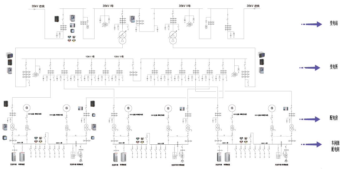 電力監控系統實現對變壓器、柴油發電機、斷路器以及其它重要設備進行監視、測量、記錄、報警等功能,并與保護設備和遠方控制中心及其他設備通信,實時掌握供電系統運行狀況和可能存在的隱患,快速排除故障,保障整個藥企廠區生產供電的穩定、可靠。