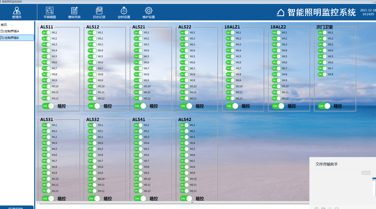 可以通過電腦或者觸控終端控制一棟樓、某一層或某個區域所有照明燈具開關。可以對單個照明回路實現開關控制,還可對每個模塊、箱子、樓層、自定義分區實現總控。現場受控回路的開關狀態會實時反饋。