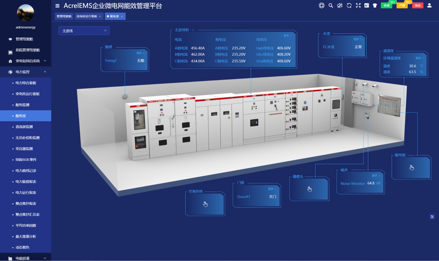 配電室綜合監控系統實現配電室環境監測、有害氣體監測、安防監控、采暖通風、門禁、燈光、風機、除濕機、空調控制等功能。實現動力環境各數據的檢測與設備控制,實現動力環境優化,避免運行環境的失控導致配電設備運行故障,保證維護人員安全,延長設備使用壽命,減少配電室粗放式管理導致成本過高,同時實現配電動力環境的分布式遠程管理。
