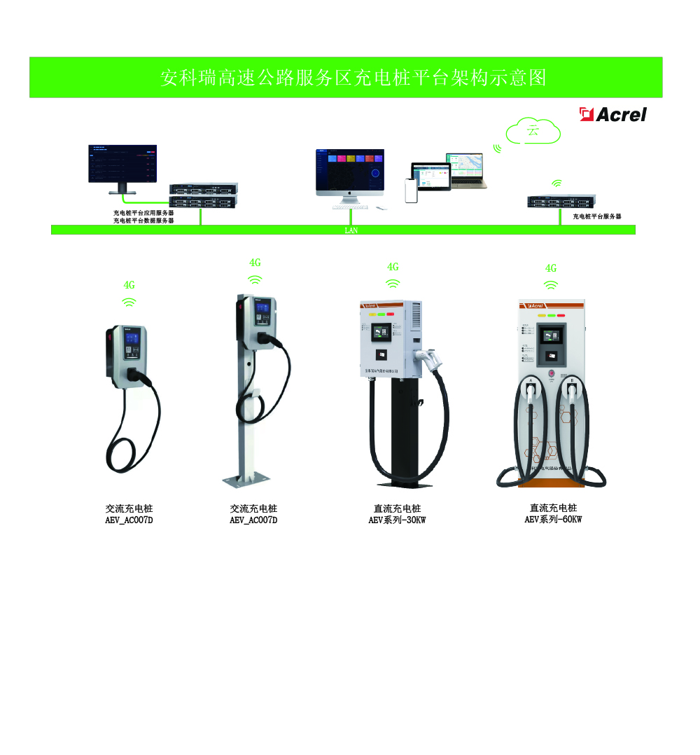 由于近年來新能源電動汽車的普及,高速公路服務區需要提供充電樁為其進行充電。充電樁管理系統通過物聯網技術對接入系統的充電樁站點和各個充電樁進行不間斷地數據采集和監控,解決用高速用電管理部門對充電樁監控問題。電動汽車支持IC卡和掃碼充電方式。遠程充電樁系統可實時遠程完成啟動充電、強制停止、單價設置等控制指令,用戶可通過APP、微信、支付寶小程序掃描二維碼,進行支付后,系統發起充電請求,控制二維碼對應的充電樁完成電動汽車的充電過程。同時對各類故障如充電機過溫保護、充電機輸入輸出過壓、欠壓、絕緣檢測故障等一系列故障進行預警;能夠遠程控制,提供財務報表和數據分析等功能。