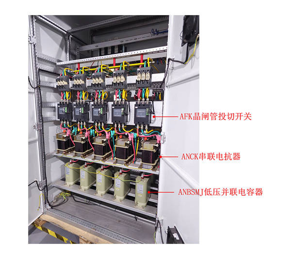 ANSVC低壓無功功率補償裝置內置ARC無功補償控制器、AFK投切開關、ANCK電抗器及ANBSMJ自愈式并聯電容器。